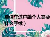 大家好,小东方来为大家解答以上的问题。单位车过户给个人需要什么手续费,单位车过户给个人需要什么手续这个很多人还不知道,现在让我们一起 浏览全文>>