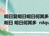 大家好,小东方来为大家解答以上的问题。明日复明日明日何其多的下一句是什么意思,ldquo 明日复明日 明日何其多 rdquo 的全诗是什么 浏览全文>>