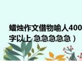 大家好,小东方来为大家解答以上的问题。蜡烛作文借物喻人400字左右,写蜡烛借物喻人的作文400字以上 急急急急急这个很多人还不知道,现在让 浏览全文>>
