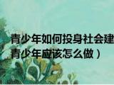 大家好,小东方来为大家解答以上的问题。青少年如何投身社会建设中,在社会主义现代化的建设当中青少年应该怎么做这个很多人还不知道,现在让 浏览全文>>