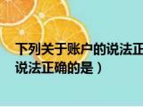 大家好,小东方来为大家解答以上的问题。下列关于账户的说法正确的是A会计核算,下列关于账户的说法正确的是这个很多人还不知道,现在让我们 浏览全文>>