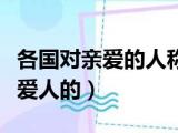 大家好,小东方来为大家解答以上的问题。各国对亲爱的人称呼,各个国家都是怎么称呼爱人的这个很多人还不知道,现在让我们一起来看看吧!1、 浏览全文>>