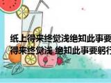 大家好,小东方来为大家解答以上的问题。纸上得来终觉浅绝知此事要躬行陆游这句话强调的是,9 ldquo 纸上得来终觉浅 绝知此事要躬行 浏览全文>>