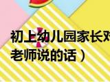 大家好,小东方来为大家解答以上的问题。初上幼儿园家长对老师说的话,幼儿园家长对老师说的话这个很多人还不知道,现在让我们一起来看看吧! 浏览全文>>