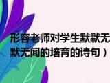大家好,小东方来为大家解答以上的问题。形容老师对学生默默无闻的培养的诗句,形容老师对学生默默无闻的培育的诗句这个很多人还不知道,现在 浏览全文>>