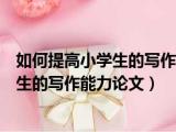 大家好,小东方来为大家解答以上的问题。如何提高小学生的写作能力论文研究的目的,如何提高小学生的写作能力论文这个很多人还不知道,现在让 浏览全文>>