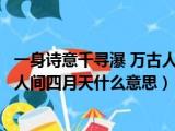 大家好,小东方来为大家解答以上的问题。一身诗意千寻瀑 万古人间四月天翻译,一身诗意千寻瀑万古人间四月天什么意思这个很多人还不知道,现 浏览全文>>