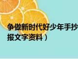大家好,小东方来为大家解答以上的问题。争做新时代好少年手抄报模板内容,争做新时代好少年手抄报文字资料这个很多人还不知道,现在让我们一 浏览全文>>