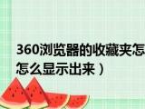大家好,小东方来为大家解答以上的问题。360浏览器的收藏夹怎么显示出来了,360浏览器的收藏夹怎么显示出来这个很多人还不知道,现在让我们一 浏览全文>>