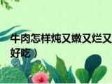 大家好,小爱来为大家解答以上问题。牛肉怎样炖又嫩又烂又好吃宝宝吃,牛肉怎样炖又嫩又烂又好吃很多人还不知道,现在让我们一起来看看吧! 浏览全文>>