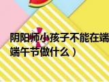 大家好,小爱来为大家解答以上问题。阴阳师小孩子不能在端午节做什么,阴阳师小孩子不可以在端午节做什么很多人还不知道,现在让我们一起来 浏览全文>>