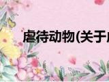 大家好,今天小方来说说一篇关于虐待动物,关于虐待动物部分内容简述的文章,那么现在就为大家来简单介绍下,希望对各位小伙伴们有所帮助。 浏览全文>>
