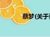 大家好,今天小方来说说一篇关于蔡梦,关于蔡梦部分内容简述的文章,那么现在就为大家来简单介绍下,希望对各位小伙伴们有所帮助。 1、 浏览全文>>
