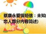 大家好,今天小方来说说一篇关于蔡康永爱情短信:未知的恋人,关于蔡康永爱情短信:未知的恋人部分内容简述的文章,那么现在就为大家来简单 浏览全文>>
