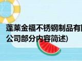大家好,今天小方来说说一篇关于蓬莱金福不锈钢制品有限公司,关于蓬莱金福不锈钢制品有限公司部分内容简述的文章,那么现在就为大家来简单 浏览全文>>