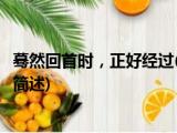 大家好,今天小方来说说一篇关于蓦然回首时,正好经过,关于蓦然回首时,正好经过部分内容简述的文章,那么现在就为大家来简单介绍下,希望 浏览全文>>