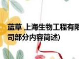大家好,今天小方来说说一篇关于蓝草 上海生物工程有限公司,关于蓝草 上海生物工程有限公司部分内容简述的文章,那么现在就为大家来简单 浏览全文>>
