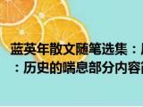 大家好,今天小方来说说一篇关于蓝英年散文随笔选集:历史的喘息,关于蓝英年散文随笔选集:历史的喘息部分内容简述的文章,那么现在就为大 浏览全文>>