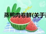 大家好,今天小方来说说一篇关于蒸鸭肉卷鲜,关于蒸鸭肉卷鲜部分内容简述的文章,那么现在就为大家来简单介绍下,希望对各位小伙伴们有所帮 浏览全文>>