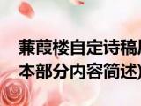 大家好,今天小方来说说一篇关于蒹葭楼自定诗稿原本,关于蒹葭楼自定诗稿原本部分内容简述的文章,那么现在就为大家来简单介绍下,希望对各 浏览全文>>