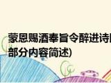 大家好,今天小方来说说一篇关于蒙恩赐酒奉旨令醉进诗以谢,关于蒙恩赐酒奉旨令醉进诗以谢部分内容简述的文章,那么现在就为大家来简单介绍 浏览全文>>