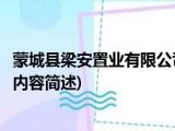 大家好,今天小方来说说一篇关于蒙城县梁安置业有限公司,关于蒙城县梁安置业有限公司部分内容简述的文章,那么现在就为大家来简单介绍下, 浏览全文>>