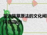 大家好,今天小方来说说一篇关于蒙古族草原法的文化阐释,关于蒙古族草原法的文化阐释部分内容简述的文章,那么现在就为大家来简单介绍下, 浏览全文>>