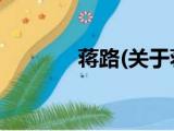大家好,今天小方来说说一篇关于蒋路,关于蒋路部分内容简述的文章,那么现在就为大家来简单介绍下,希望对各位小伙伴们有所帮助。 1、 浏览全文>>