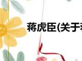 大家好,今天小方来说说一篇关于蒋虎臣,关于蒋虎臣部分内容简述的文章,那么现在就为大家来简单介绍下,希望对各位小伙伴们有所帮助。 1、 浏览全文>>