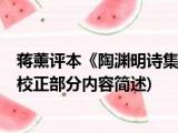 大家好,今天小方来说说一篇关于蒋薰评本《陶渊明诗集》校正,关于蒋薰评本《陶渊明诗集》校正部分内容简述的文章,那么现在就为大家来简单 浏览全文>>