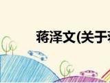 大家好,今天小方来说说一篇关于蒋泽文,关于蒋泽文部分内容简述的文章,那么现在就为大家来简单介绍下,希望对各位小伙伴们有所帮助。 1、 浏览全文>>