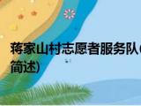 大家好,今天小方来说说一篇关于蒋家山村志愿者服务队,关于蒋家山村志愿者服务队部分内容简述的文章,那么现在就为大家来简单介绍下,希望 浏览全文>>