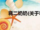 大家好,今天小方来说说一篇关于蒋二奶奶,关于蒋二奶奶部分内容简述的文章,那么现在就为大家来简单介绍下,希望对各位小伙伴们有所帮助。 浏览全文>>