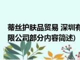 大家好,今天小方来说说一篇关于蒂丝护肤品贸易 深圳有限公司,关于蒂丝护肤品贸易 深圳有限公司部分内容简述的文章,那么现在就为大家来 浏览全文>>