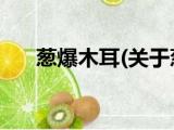 大家好,今天小方来说说一篇关于葱爆木耳,关于葱爆木耳部分内容简述的文章,那么现在就为大家来简单介绍下,希望对各位小伙伴们有所帮助。 浏览全文>>