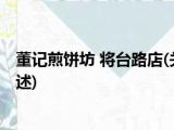 大家好,今天小方来说说一篇关于董记煎饼坊 将台路店,关于董记煎饼坊 将台路店部分内容简述的文章,那么现在就为大家来简单介绍下,希望 浏览全文>>