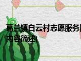大家好,今天小方来说说一篇关于葛兰镇白云村志愿服务队,关于葛兰镇白云村志愿服务队部分内容简述的文章,那么现在就为大家来简单介绍下, 浏览全文>>