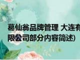 大家好,今天小方来说说一篇关于葛仙翁品牌管理 大连有限公司,关于葛仙翁品牌管理 大连有限公司部分内容简述的文章,那么现在就为大家来 浏览全文>>