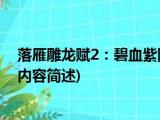 大家好,今天小方来说说一篇关于落雁雕龙赋2:碧血紫阳,关于落雁雕龙赋2:碧血紫阳部分内容简述的文章,那么现在就为大家来简单介绍下,希 浏览全文>>
