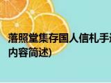 大家好,今天小方来说说一篇关于落照堂集存国人信札手迹,关于落照堂集存国人信札手迹部分内容简述的文章,那么现在就为大家来简单介绍下, 浏览全文>>