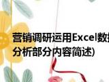 大家好,今天小方来说说一篇关于营销调研运用Excel数据分析,关于营销调研运用Excel数据分析部分内容简述的文章,那么现在就为大家来简单介 浏览全文>>