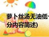 大家好,今天小方来说说一篇关于萝卜丝汤无油低卡,关于萝卜丝汤无油低卡部分内容简述的文章,那么现在就为大家来简单介绍下,希望对各位小 浏览全文>>