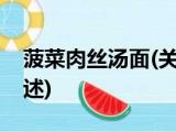 大家好,今天小方来说说一篇关于菠菜肉丝汤面,关于菠菜肉丝汤面部分内容简述的文章,那么现在就为大家来简单介绍下,希望对各位小伙伴们有 浏览全文>>
