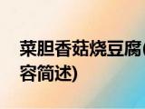 大家好,今天小方来说说一篇关于菜胆香菇烧豆腐,关于菜胆香菇烧豆腐部分内容简述的文章,那么现在就为大家来简单介绍下,希望对各位小伙伴 浏览全文>>