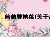 大家好,今天小方来说说一篇关于菖蒲鹿角菜,关于菖蒲鹿角菜部分内容简述的文章,那么现在就为大家来简单介绍下,希望对各位小伙伴们有所帮 浏览全文>>