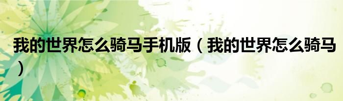 我的世界怎么骑马手机版(我的世界怎么骑马)