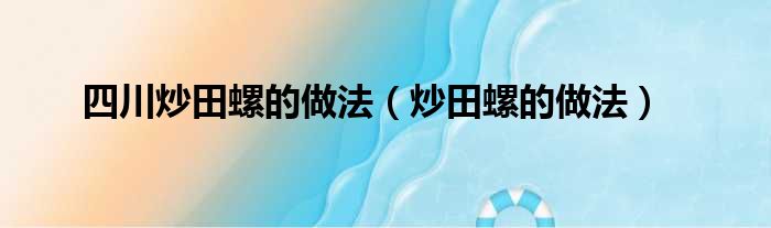 大家好,小爱来为大家解答以上问题。四川炒田螺的做法,炒田螺的做法很多人还不知道,现在让我们一起来看看吧!