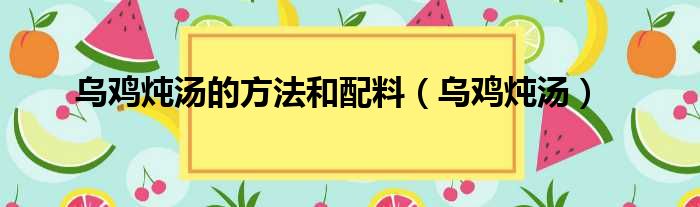 乌鸡炖汤的方法和配料(乌鸡炖汤)