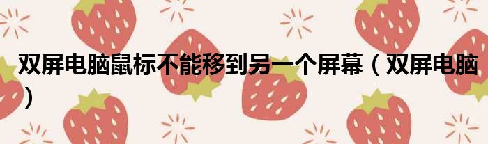 双屏电脑鼠标不能移到另一个屏幕(双屏电脑)