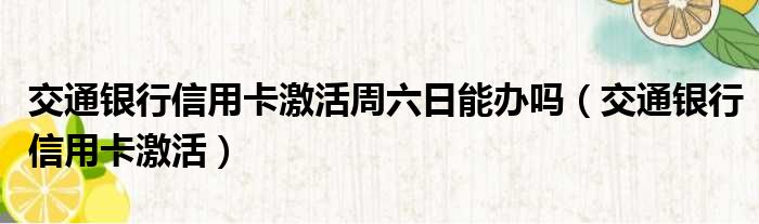 交通银行信用卡激活周六日能办吗(交通银行信用卡激活)